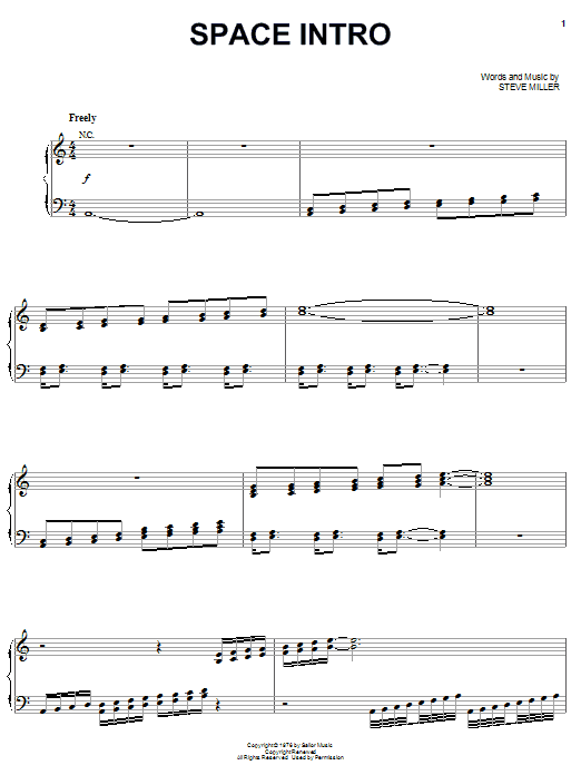 Download or print Steve Miller Band Space Intro sheet music, chords and digital score arranged for Piano, Vocal & Guitar Chords (Right-Hand Melody). This Pop score includes 2 page(s).