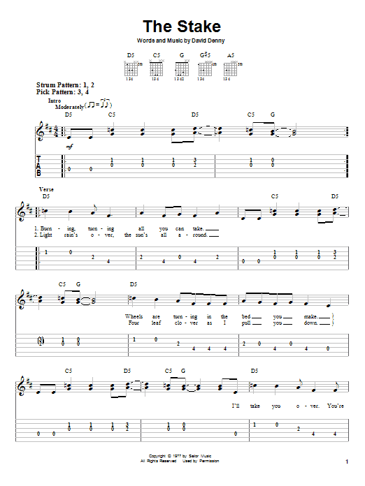 Download or print Steve Miller Band The Stake sheet music, chords and digital score arranged for Piano, Vocal & Guitar Chords (Right-Hand Melody). This Pop score includes 2 page(s).