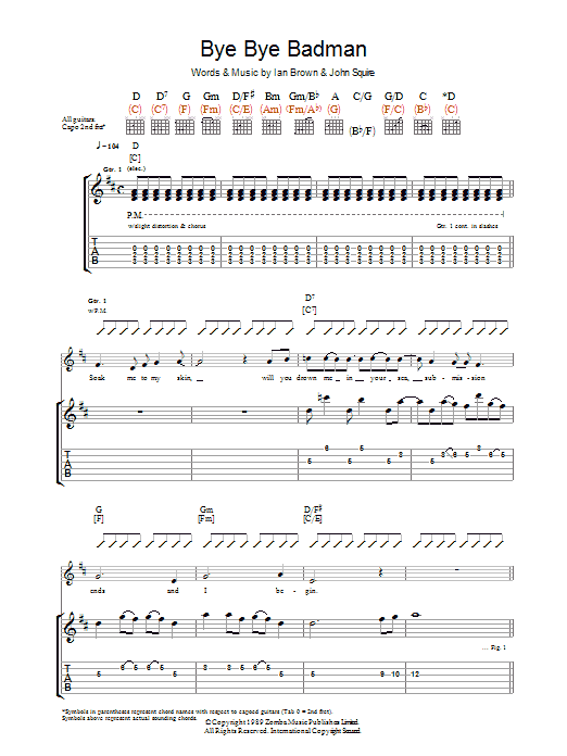 Download or print The Stone Roses Bye Bye Badman sheet music, chords and digital score arranged for Guitar Chords/Lyrics. This Rock score includes 2 page(s).