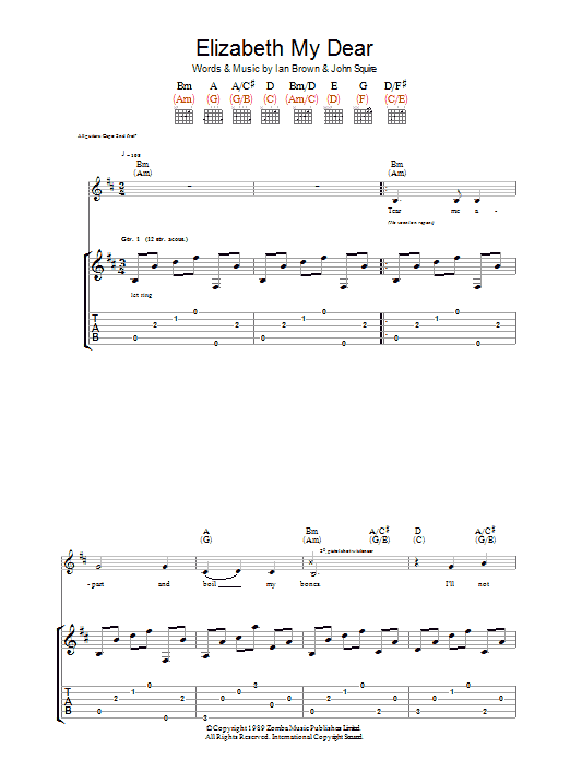 Download or print The Stone Roses Elizabeth My Dear sheet music, chords and digital score arranged for Guitar Tab. This Rock score includes 2 page(s).