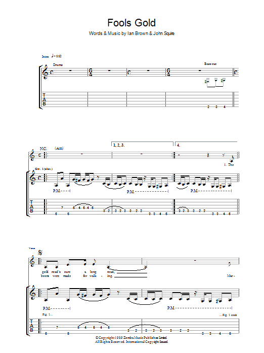 Download or print The Stone Roses Fool's Gold sheet music, chords and digital score arranged for Guitar Chords/Lyrics. This Rock score includes 3 page(s).