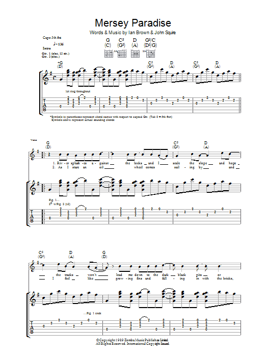Download or print The Stone Roses Mersey Paradise sheet music, chords and digital score arranged for Guitar Chords/Lyrics. This Rock score includes 2 page(s).