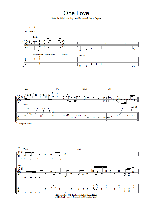 Download or print The Stone Roses One Love sheet music, chords and digital score arranged for Guitar Chords/Lyrics. This Rock score includes 2 page(s).
