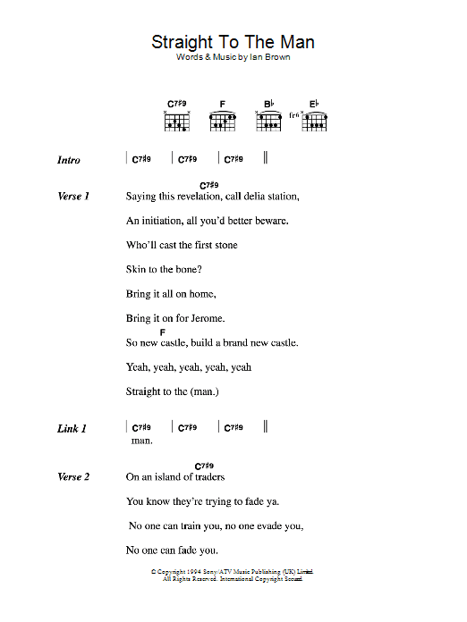 Download or print The Stone Roses Straight To The Man sheet music, chords and digital score arranged for Guitar Chords/Lyrics. This Rock score includes 3 page(s).