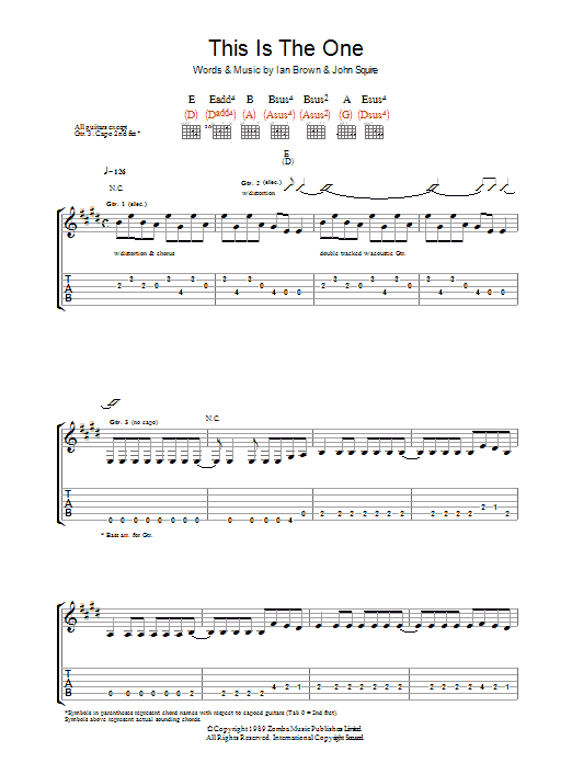 Download or print The Stone Roses This is The One sheet music, chords and digital score arranged for Guitar Tab. This Rock score includes 10 page(s).