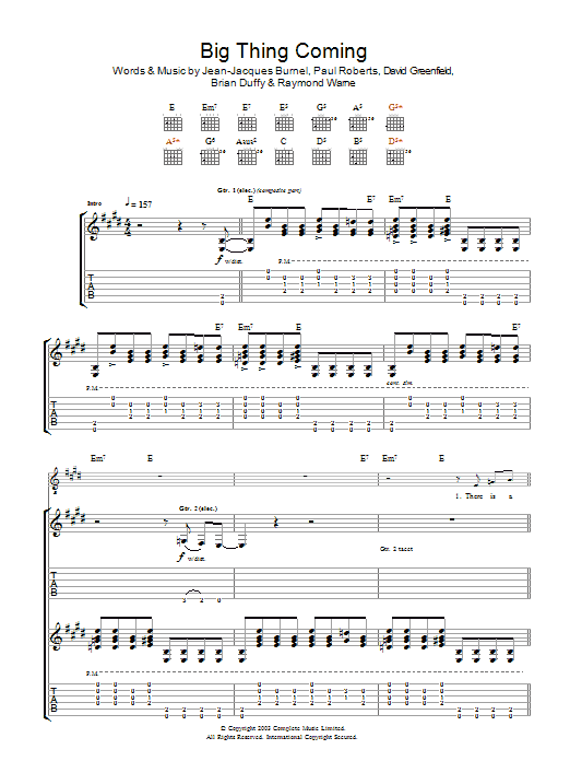 Download or print The Stranglers Big Thing Coming sheet music, chords and digital score arranged for Guitar Tab. This Rock score includes 7 page(s).