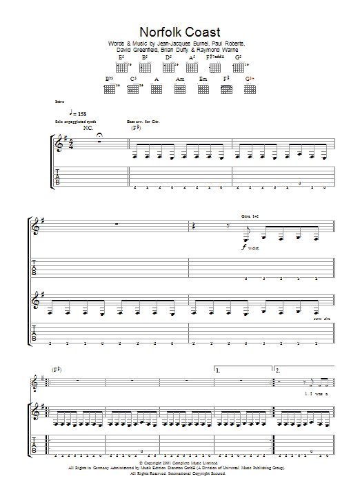 Download or print The Stranglers Norfolk Coast sheet music, chords and digital score arranged for Guitar Tab. This Rock score includes 6 page(s).