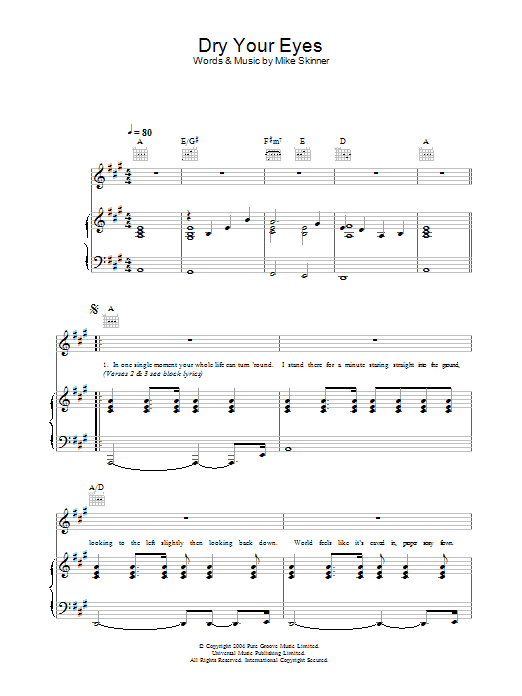 Download or print The Streets Dry Your Eyes sheet music, chords and digital score arranged for Guitar Chords/Lyrics. This Pop score includes 4 page(s).