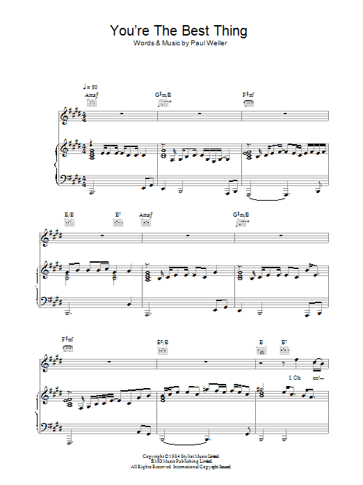 Download or print The Style Council You're The Best Thing sheet music, chords and digital score arranged for Guitar Chords/Lyrics. This Pop score includes 3 page(s).