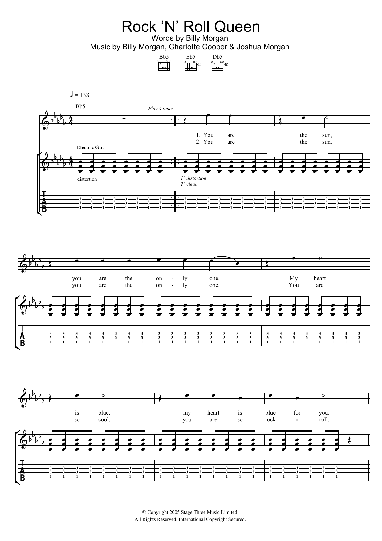 Download or print The Subways Rock 'N' Roll Queen sheet music, chords and digital score arranged for Guitar Tab. This Rock score includes 3 page(s).