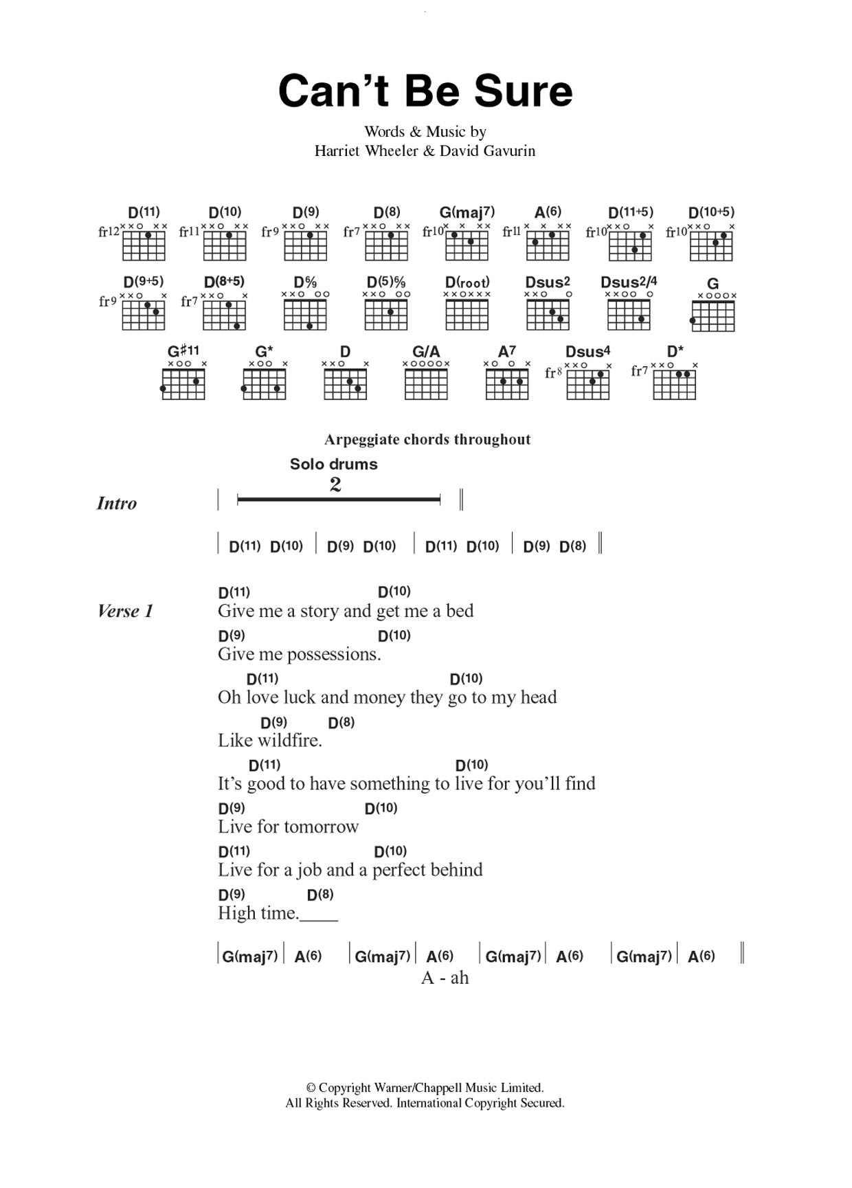 Download or print The Sundays Can't Be Sure sheet music, chords and digital score arranged for Guitar Chords/Lyrics. This Rock score includes 3 page(s).