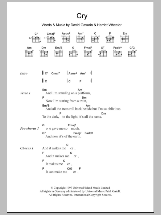 Download or print The Sundays Cry sheet music, chords and digital score arranged for Guitar Chords/Lyrics. This Rock score includes 2 page(s).