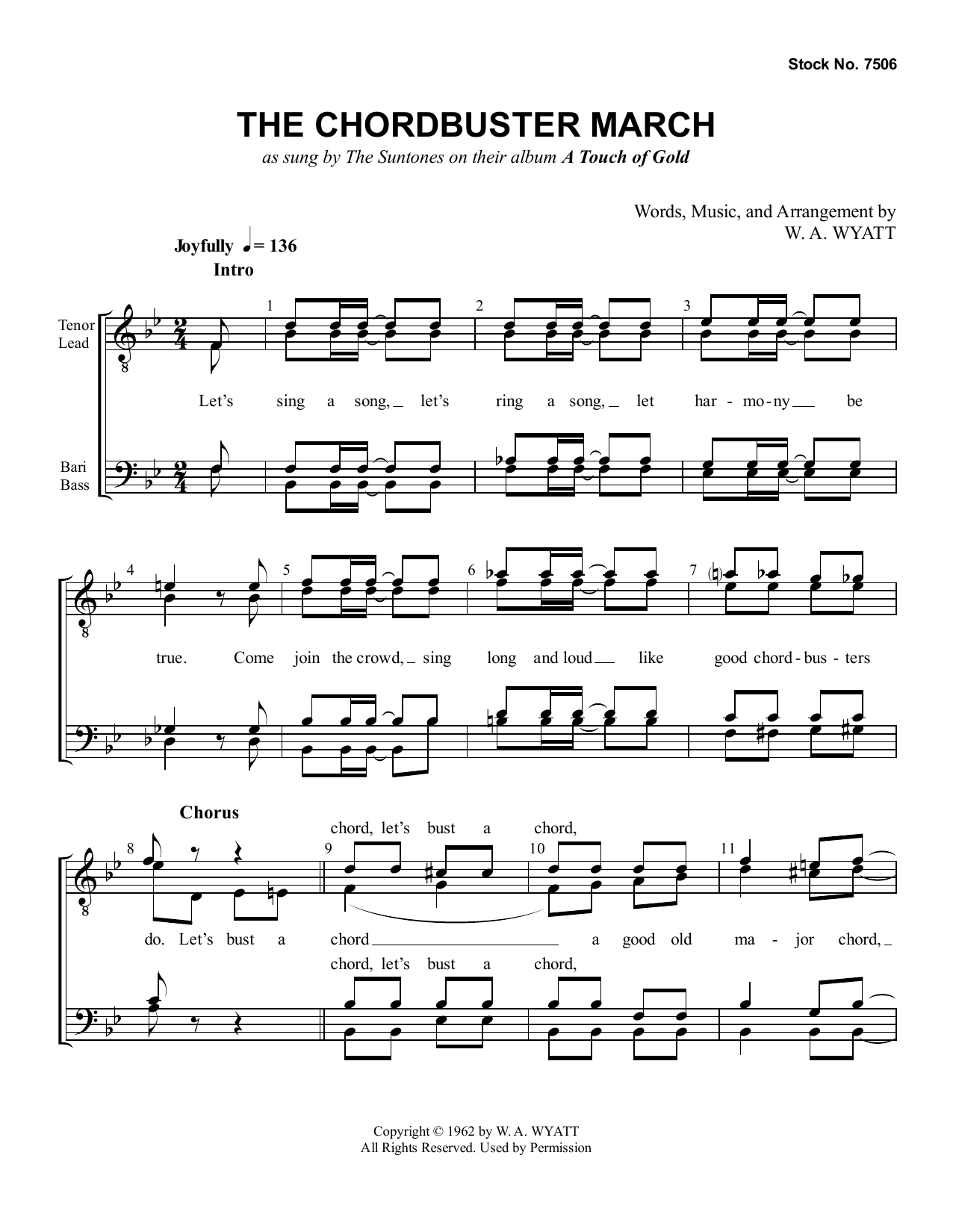 Download or print The Suntones The Chordbuster March sheet music, chords and digital score arranged for TTBB Choir. This Barbershop score includes 5 page(s).