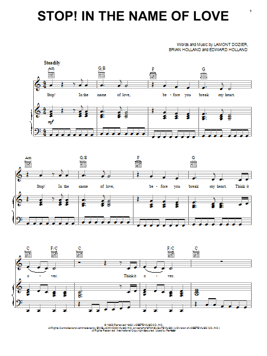 Download or print The Supremes Stop! In The Name Of Love sheet music, chords and digital score arranged for Super Easy Piano. This Pop score includes 2 page(s).