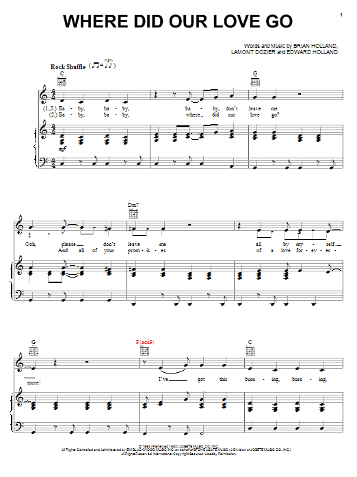 Download or print The Supremes Where Did Our Love Go sheet music, chords and digital score arranged for Easy Lead Sheet / Fake Book. This Pop score includes 2 page(s).
