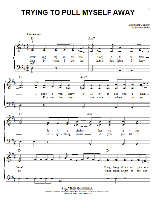 Download or print The Swell Season Trying To Pull Myself Away sheet music, chords and digital score arranged for Easy Guitar Tab. This Film/TV score includes 4 page(s).