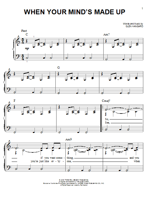 Download or print Glen Hansard & Marketa Irglova When Your Mind's Made Up (from Once) sheet music, chords and digital score arranged for Piano & Vocal. This Pop score includes 6 page(s).
