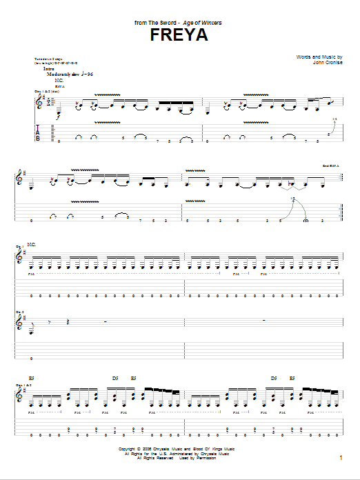 Download or print The Sword Freya sheet music, chords and digital score arranged for Guitar Tab. This Metal score includes 8 page(s).