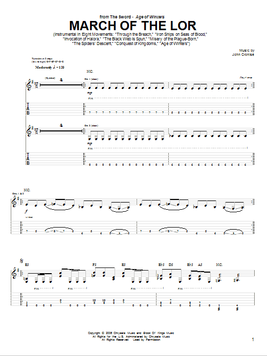 This composition is beautifuly arranged for Guitar Tab includes 7 page(s). It is performed by The Sword. The style of the score is 'Pop'. Catalog SKU number of the notation is 79856.