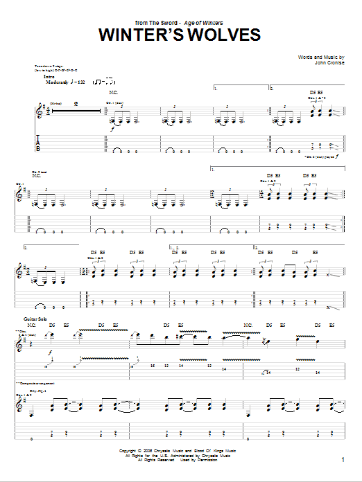 Download or print The Sword Winter's Wolves sheet music, chords and digital score arranged for Guitar Tab. This Metal score includes 6 page(s).