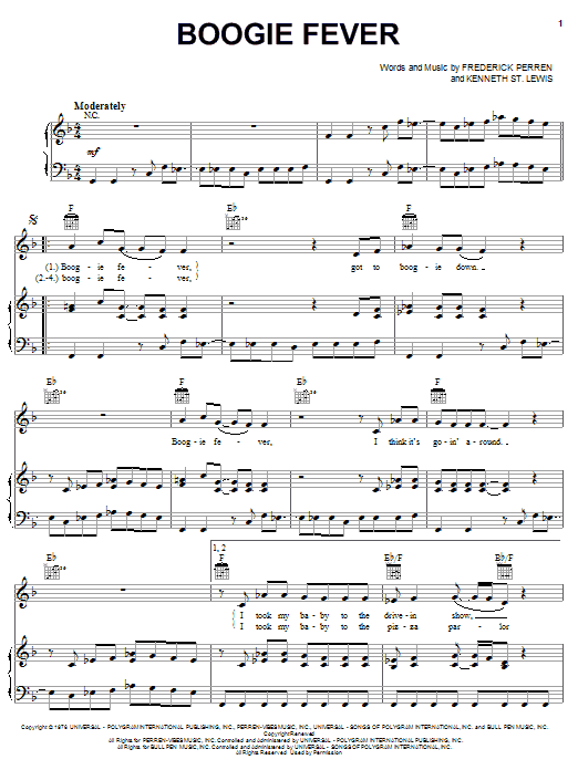 Download or print The Sylvers Boogie Fever sheet music, chords and digital score arranged for Lead Sheet / Fake Book. This Disco score includes 2 page(s).