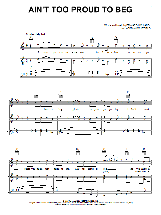 Download or print The Temptations Ain't Too Proud To Beg sheet music, chords and digital score arranged for Easy Piano. This Pop score includes 7 page(s).