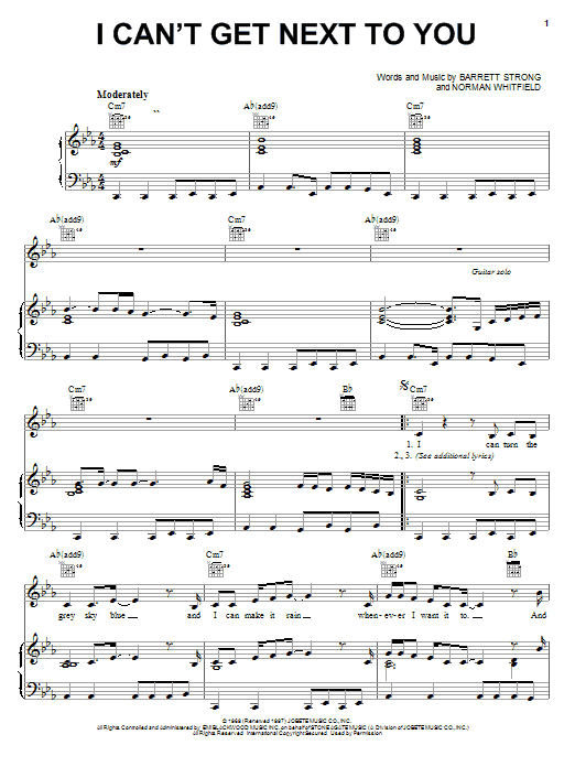 Download or print The Temptations I Can't Get Next To You sheet music, chords and digital score arranged for Piano, Vocal & Guitar Chords (Right-Hand Melody). This Oldies score includes 5 page(s).