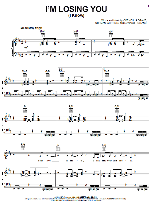 Download or print The Temptations I'm Losing You (I Know) sheet music, chords and digital score arranged for Lead Sheet / Fake Book. This Pop score includes 2 page(s).