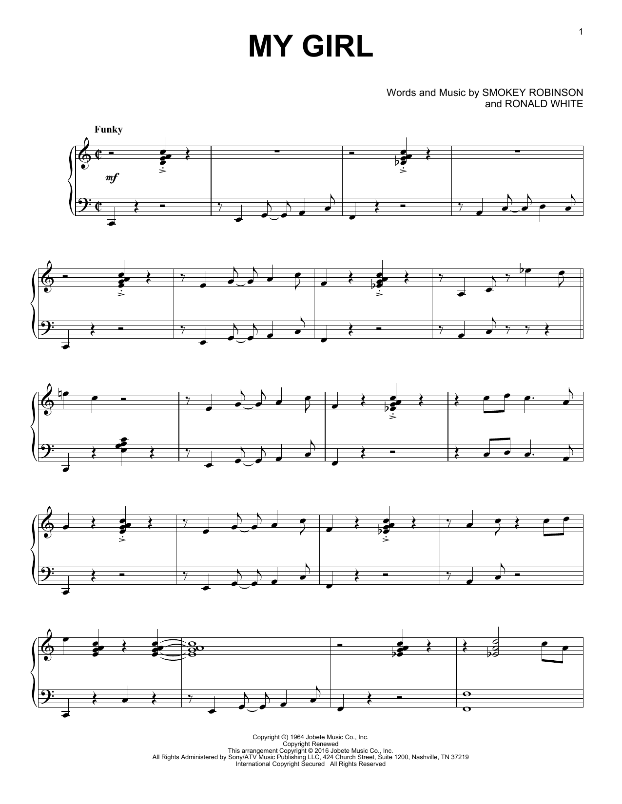 Download or print The Temptations My Girl [Jazz version] sheet music, chords and digital score arranged for Piano Solo. This Love score includes 3 page(s).