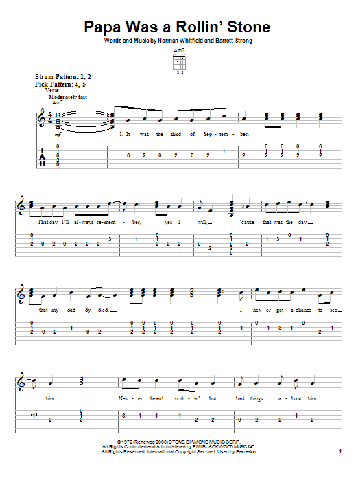 Download or print The Temptations Papa Was A Rollin' Stone sheet music, chords and digital score arranged for Trumpet Solo. This Pop score includes 1 page(s).