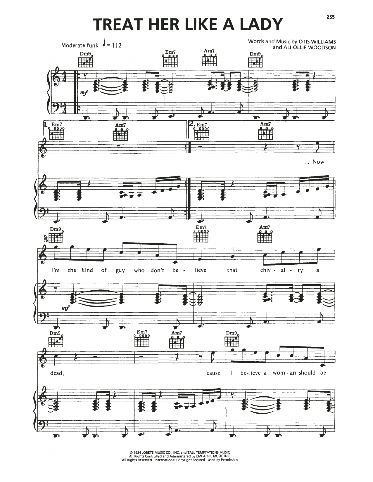 Download or print The Temptations Treat Her Like A Lady sheet music, chords and digital score arranged for Piano, Vocal & Guitar Chords (Right-Hand Melody). This Soul score includes 5 page(s).