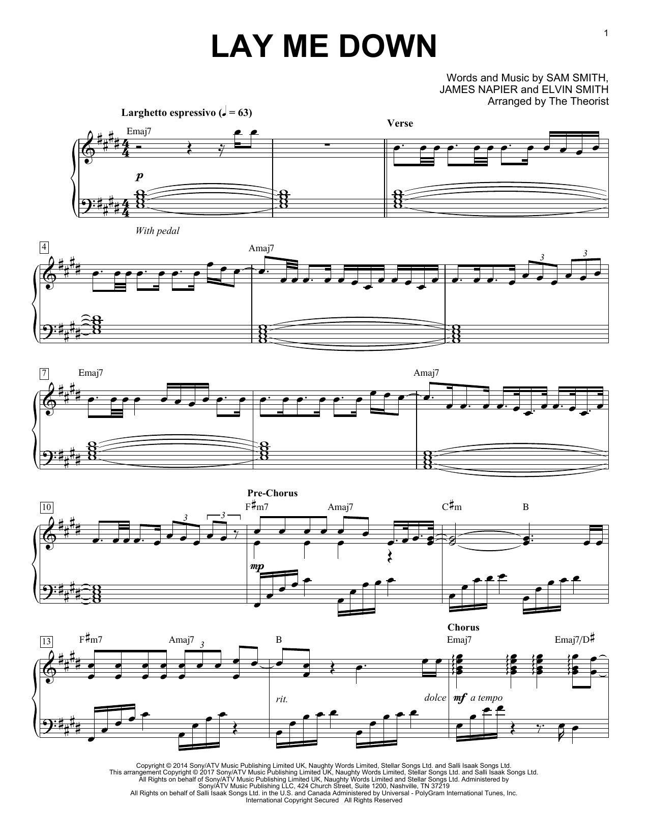 Download or print The Theorist Lay Me Down sheet music, chords and digital score arranged for Piano Solo. This Pop score includes 4 page(s).