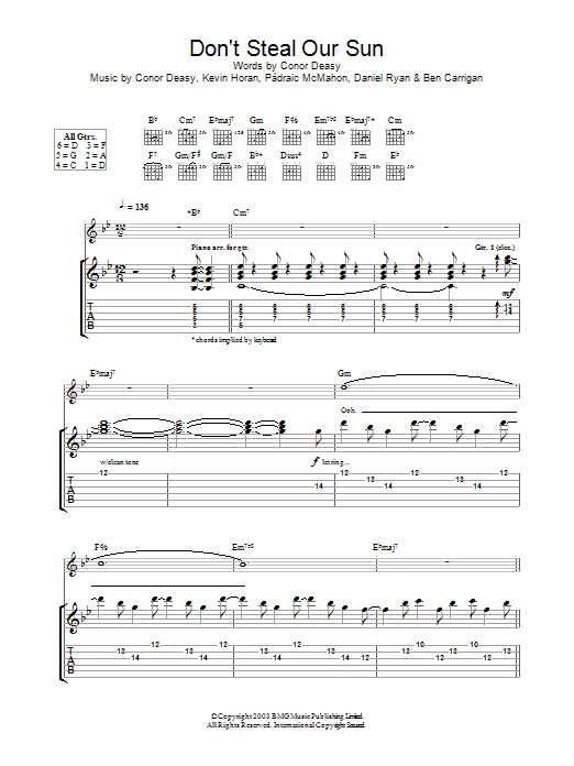 Download or print The Thrills Don't Steal Our Sun sheet music, chords and digital score arranged for Lead Sheet / Fake Book. This Pop score includes 2 page(s).