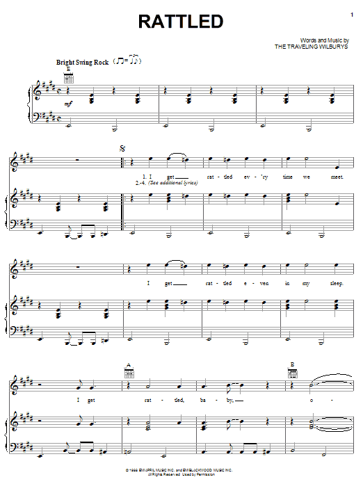Download or print The Traveling Wilburys Rattled sheet music, chords and digital score arranged for Piano, Vocal & Guitar Chords (Right-Hand Melody). This Pop score includes 5 page(s).