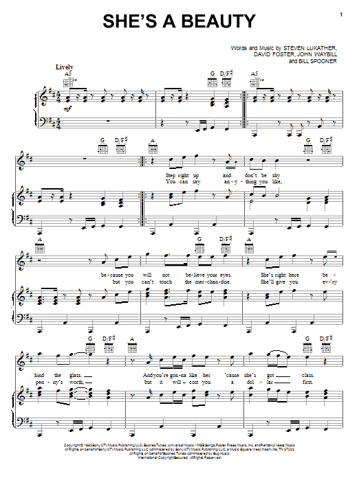 Download or print The Tubes She's A Beauty sheet music, chords and digital score arranged for Piano, Vocal & Guitar Chords (Right-Hand Melody). This Pop score includes 6 page(s).