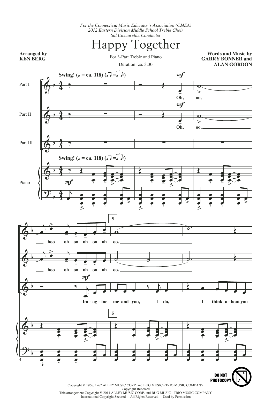 Quick facts Happy Together (arr. Ken Berg) about digital sheet music