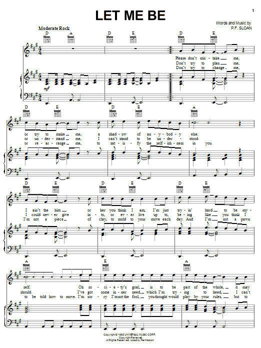 Download or print The Turtles Let Me Be sheet music, chords and digital score arranged for Piano, Vocal & Guitar Chords (Right-Hand Melody). This Patriotic score includes 2 page(s).