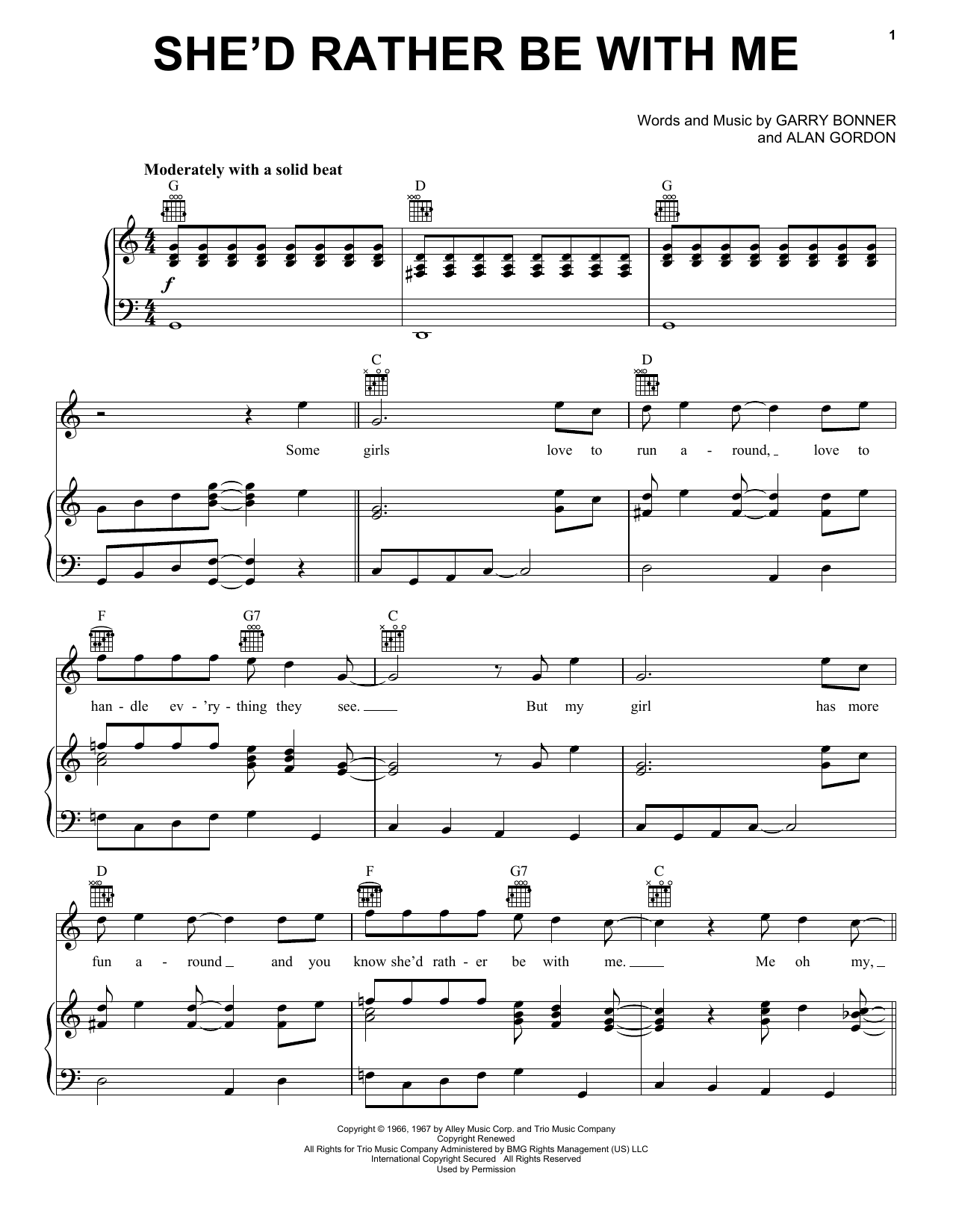 Download or print The Turtles She'd Rather Be With Me sheet music, chords and digital score arranged for Piano, Vocal & Guitar Chords (Right-Hand Melody). This Pop score includes 3 page(s).