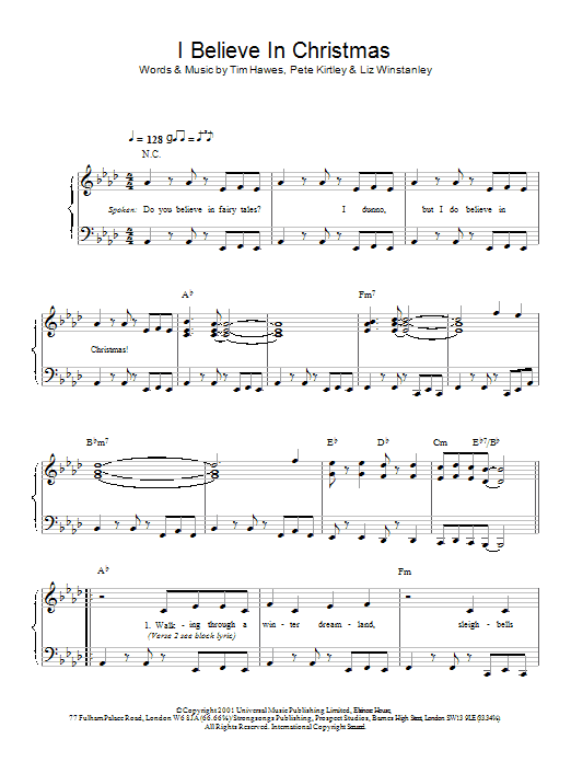 Download or print The Tweenies I Believe In Christmas sheet music, chords and digital score arranged for Piano, Vocal & Guitar Chords. This Pop score includes 5 page(s).