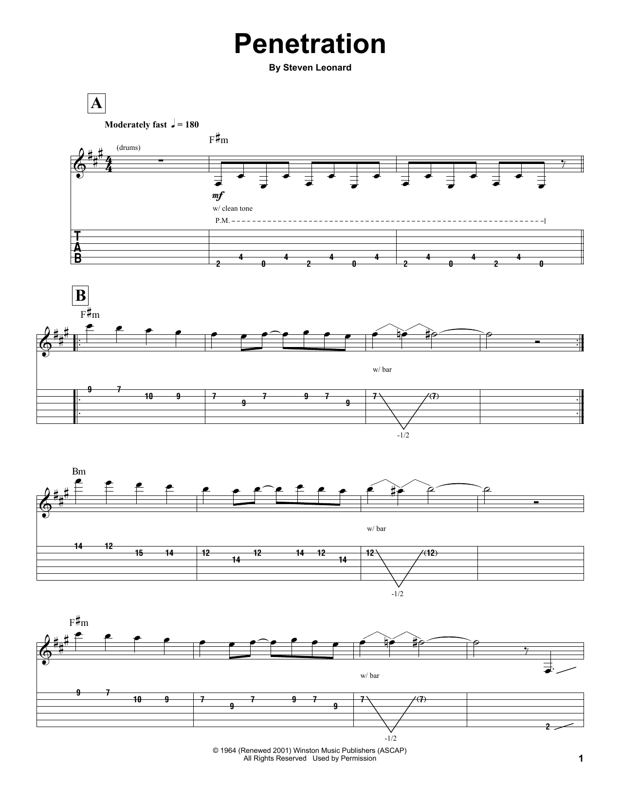 Download or print The Ventures Penetration sheet music, chords and digital score arranged for Guitar Tab (Single Guitar). This Pop score includes 4 page(s).