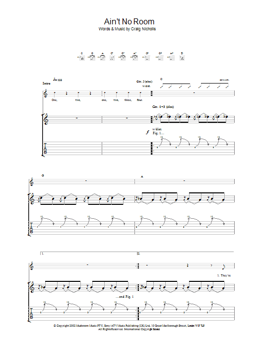 Download or print The Vines Ain't No Room sheet music, chords and digital score arranged for Guitar Tab. This Pop score includes 6 page(s).