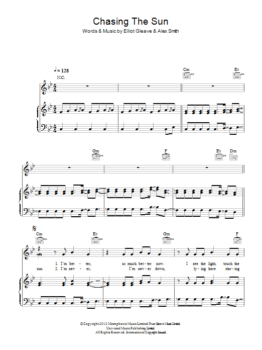 Download or print The Wanted Chasing The Sun sheet music, chords and digital score arranged for Piano, Vocal & Guitar Chords. This Pop score includes 8 page(s).