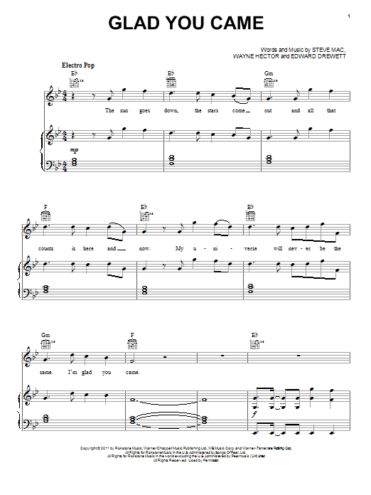 Download or print The Wanted Glad You Came sheet music, chords and digital score arranged for Flute Solo. This Pop score includes 2 page(s).