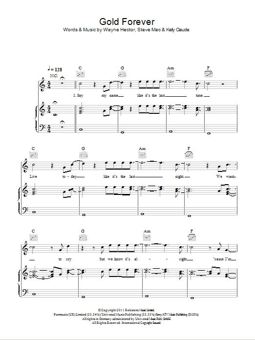 Download or print The Wanted Gold Forever sheet music, chords and digital score arranged for Piano, Vocal & Guitar Chords. This Pop score includes 8 page(s).