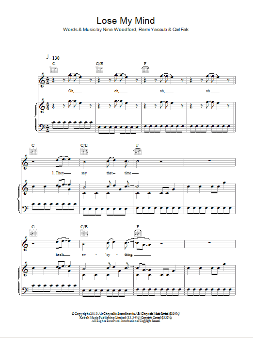 Download or print The Wanted Lose My Mind sheet music, chords and digital score arranged for Piano, Vocal & Guitar Chords. This Pop score includes 8 page(s).