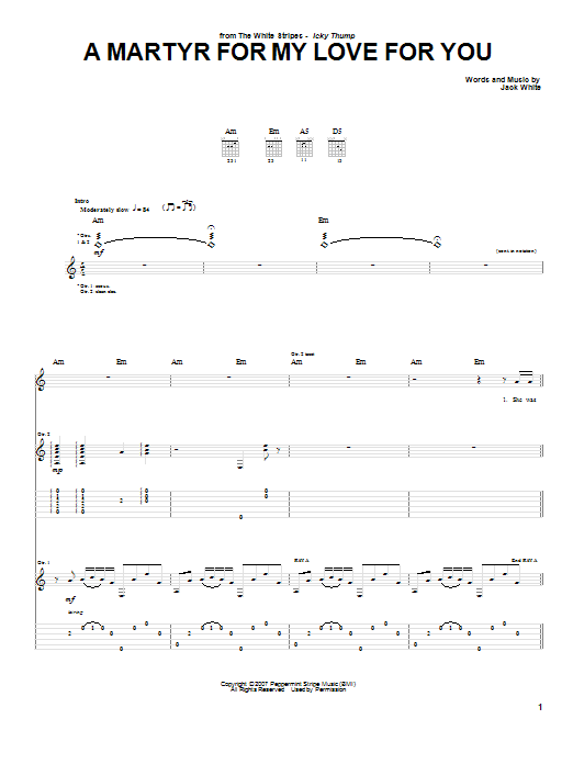 Download or print The White Stripes A Martyr For My Love For You sheet music, chords and digital score arranged for Guitar Tab. This Pop score includes 6 page(s).