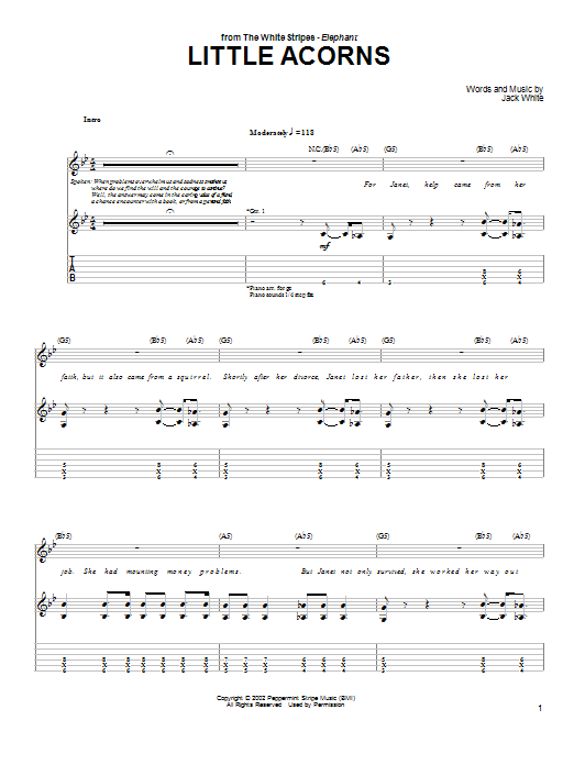 Download or print The White Stripes Little Acorns sheet music, chords and digital score arranged for Guitar Tab. This Pop score includes 6 page(s).