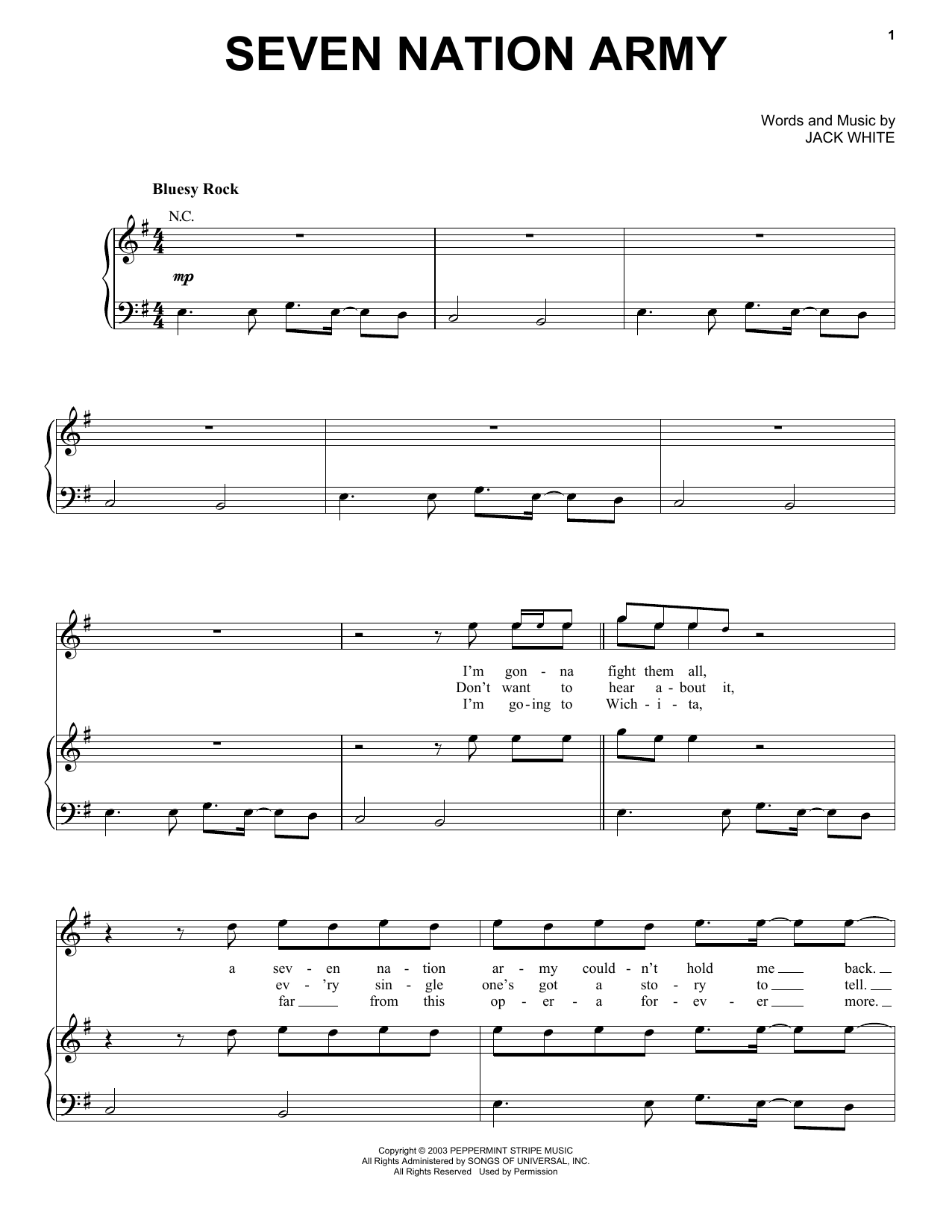 Download or print The White Stripes Seven Nation Army sheet music, chords and digital score arranged for Guitar Tab. This Alternative score includes 5 page(s).
