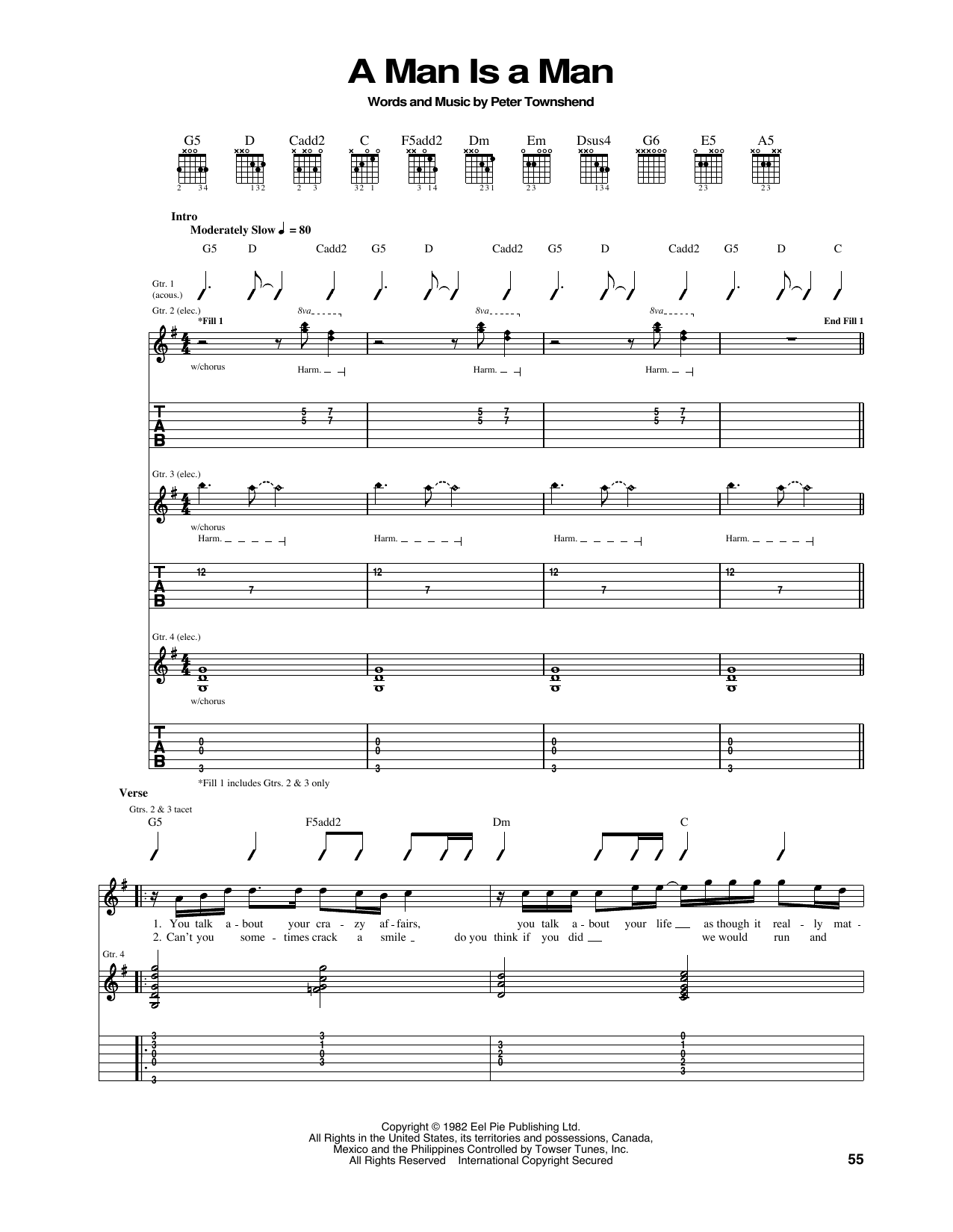 Download or print The Who A Man Is A Man sheet music, chords and digital score arranged for Guitar Tab. This Pop score includes 6 page(s).
