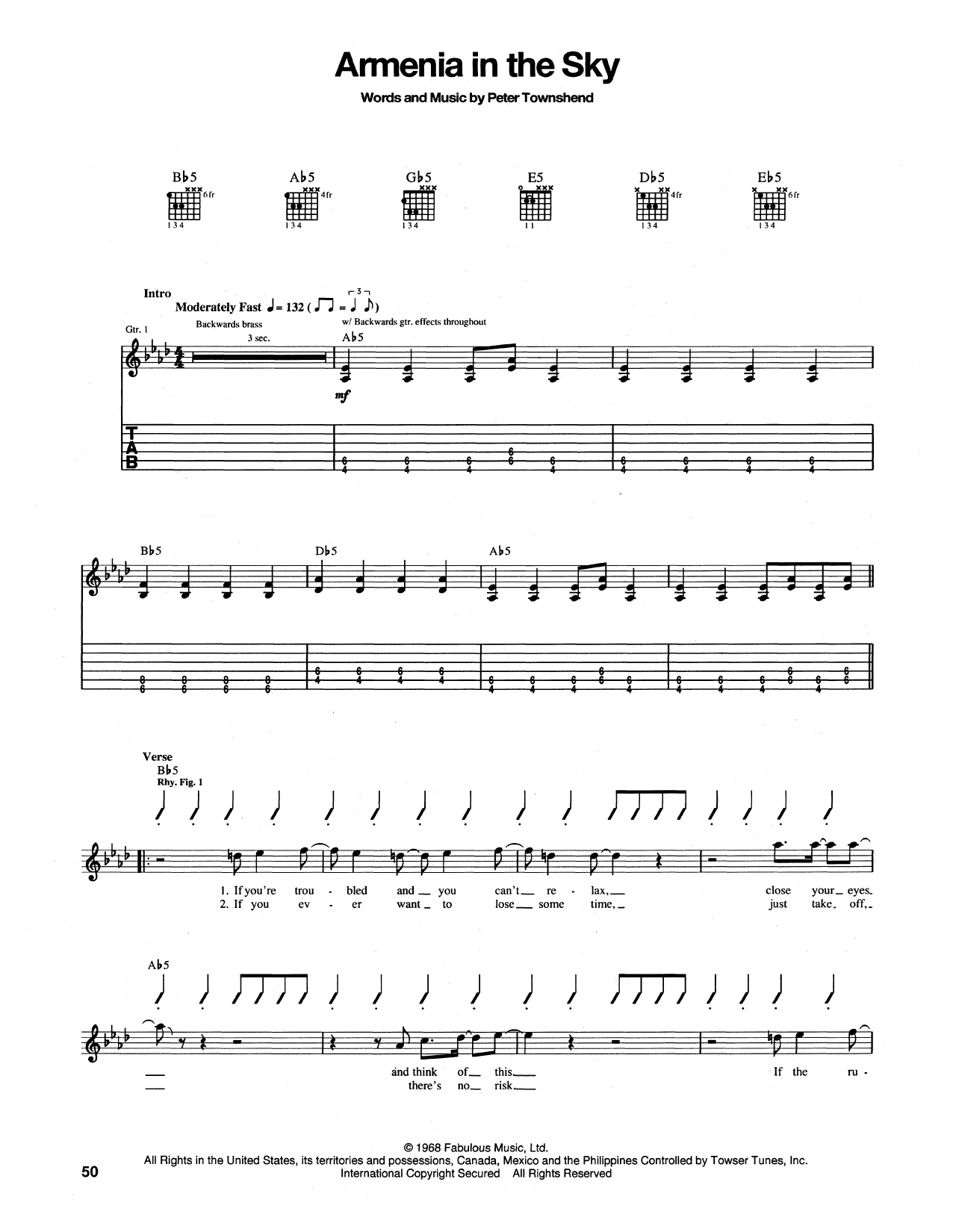Download or print The Who Armenia City In The Sky sheet music, chords and digital score arranged for Guitar Tab. This Pop score includes 3 page(s).